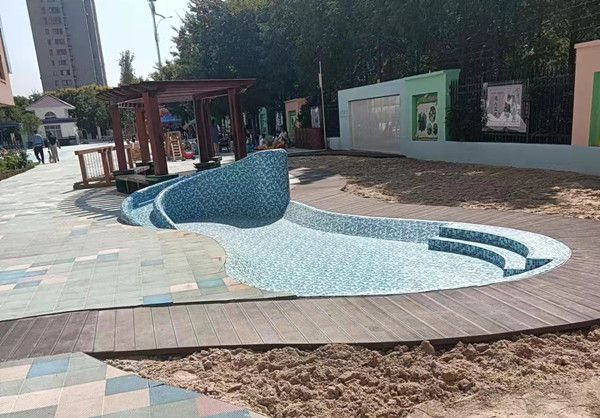 江蘇幼兒園室外戲水池游泳池防水膠膜施工完成