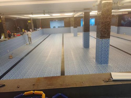 浙江室內游泳池防水膠膜施工完畢,本項目為新建鋼結構拼裝泳池,采用1.5mm顆粒防滑游泳池防水膠膜,安裝鋪設使用干鋪工藝,四周采用卡槽固定,整體形成密封結構,達到防水不漏水,效果如下: